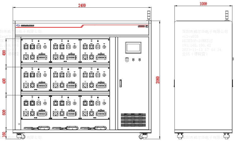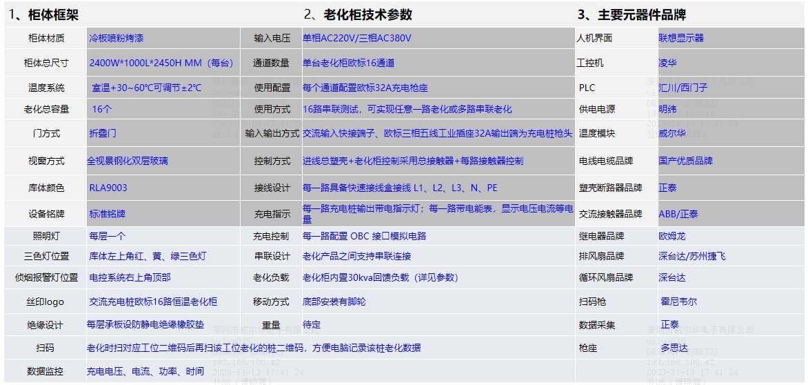 威爾華采用機柜帶輪子可移動式是一款專門用于交流充電樁老化試驗使用,老化系統(tǒng)主要包括車輛插座、車輛控制導(dǎo)引模擬電路、回饋負載、 可選三相升壓交流電源(適配電網(wǎng)電壓偏低時后面工位壓降大問題)、配套系統(tǒng)軟件等;